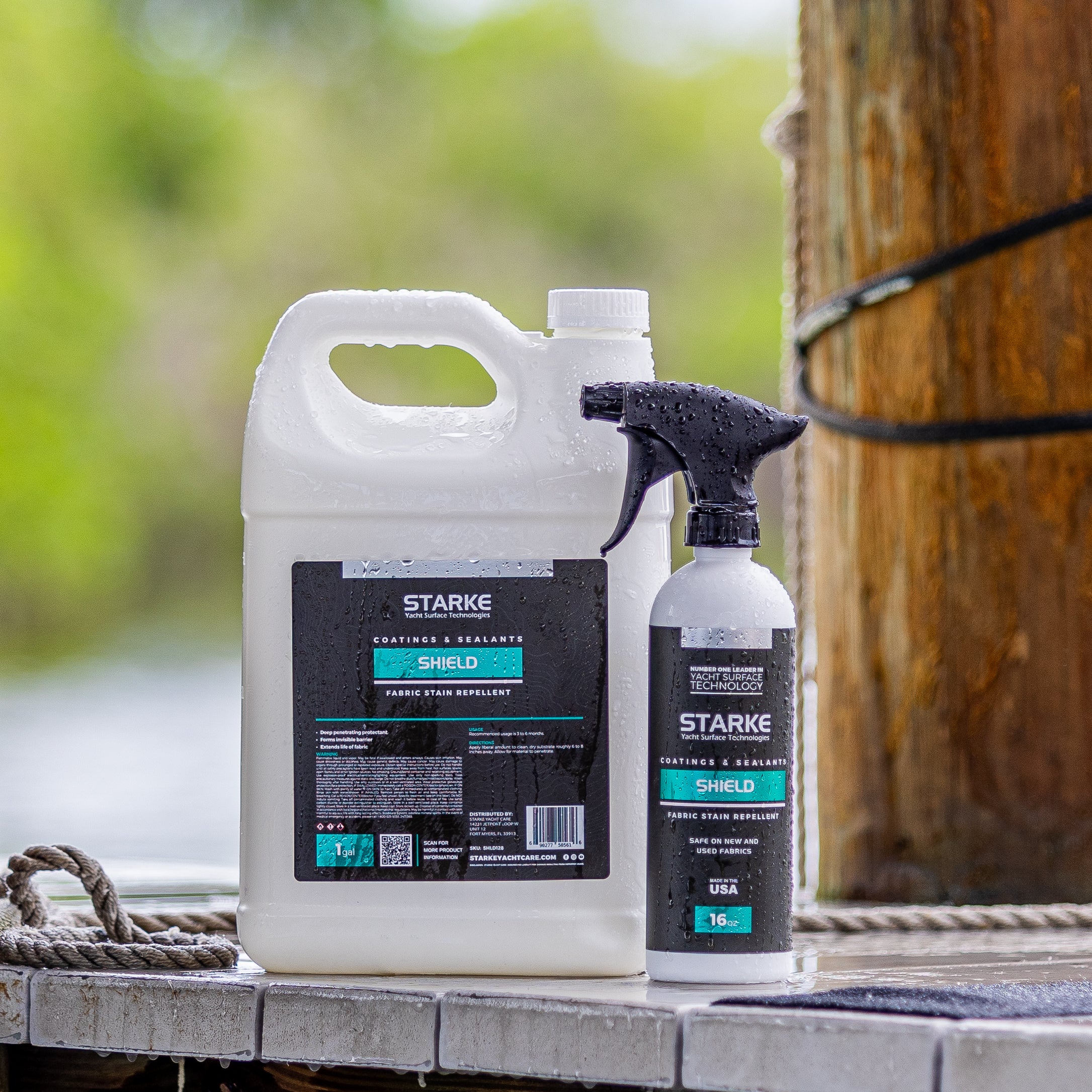Keep your boat looking sharp and worry-free—our Shield Refill Kit bundles the 16 oz spray bottle with a 128 oz value refill jug of our invisible fabric protection, all at a bundle price as smooth as your deck.